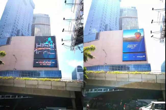 产品案例三:马来西亚喜来登大酒店项目--外墙的显示屏中选用多宝电竞户外防水款P10,该款显示屏性价比高,采用抗紫外线、抗变形模组套件,保障屏体不变形。点亮之时,屏面颜色均匀、画质逼真,播放稳定流畅,拍照毫无水波纹。甚至在太阳的直射之下,字体、细节均清晰可见。