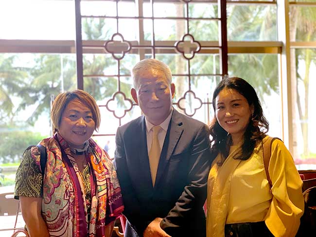 龙平芳女士、魏玉红女士与”世界建筑私企第一人“严介和合影