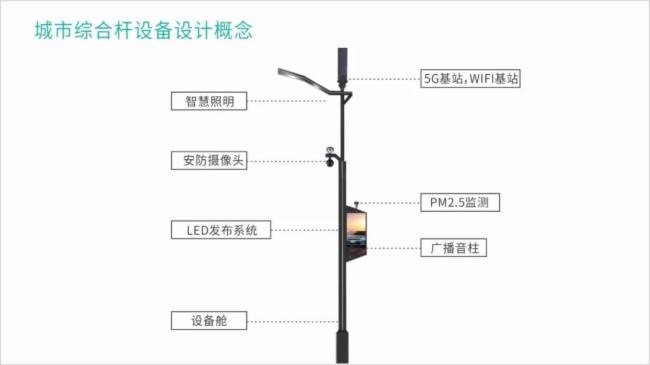 智慧灯杆是智慧城市建设的重要组成部分,是将摄像头、广告屏、充电桩、小基站等功能集于一身的新型信息基础设施,能够完成对照明、公安、市政、气象、环保、通信等多个行业的数据信息进行采集、发布以及传输。与此同时,作为5G时代车联网建设、云网建设以及通信网络建设的重要组成部分,智慧灯杆也将得以广泛应用。