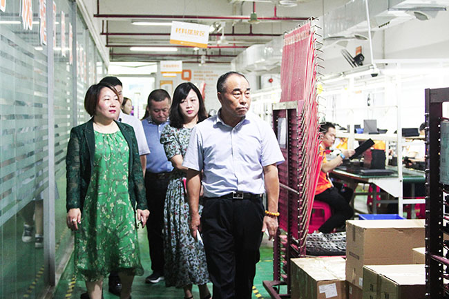 何家鸿副主席一行参观了多宝电竞生产车间及多功能展厅,仔细询问了产品生产流程和企业经营现状。毛强军先生就多宝电竞的发展历史、主要产品、业务战略等进行了详细介绍,何家鸿副主席对多宝电竞的快速成长予以高度赞扬。
