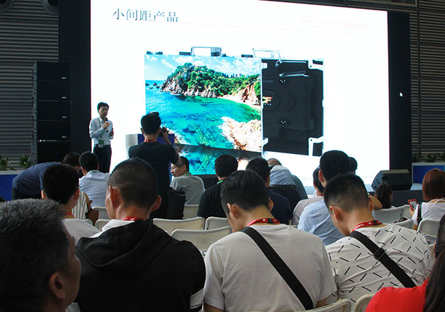 在新产品发布会上,多宝电竞研发总监向大家介绍了小间距新品“追梦”系列对比COB封装的优势及行业发展的的现状。全场座无虚席,现场气氛热烈。